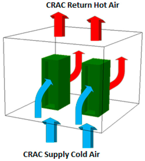 - Alkharabsheh, S.; Sammakia, B.; Shrivastava, S.; Schmidt, R. Dynamic models for server rack and CRAH in a room level CFD model of a data center. In Proceedings of the 2014 IEEE Intersociety Conference on Thermal and Thermomechanical Phenomena in Electronic Systems (ITherm), Orlando, FL, USA, 27–30 May 2014. [Google Scholar]