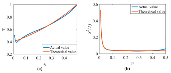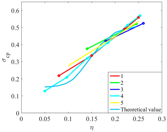 As can be seen from Figure 5, the variance of the relative compression ratio is independent of the expectation and variance of the total particle size. Therefore, the variance of the relative compression ratio can be described by Equation (7). According to Equation (3), the probability density function of the compression ratio of a single particle is: