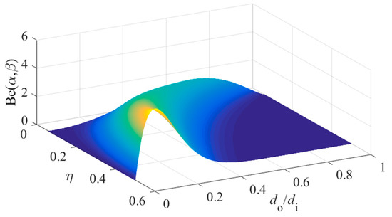 Therefore, the corresponding figure of beta distribution probability density function of the ratio of do/di under different total compression ratio η is shown in Figure 11.