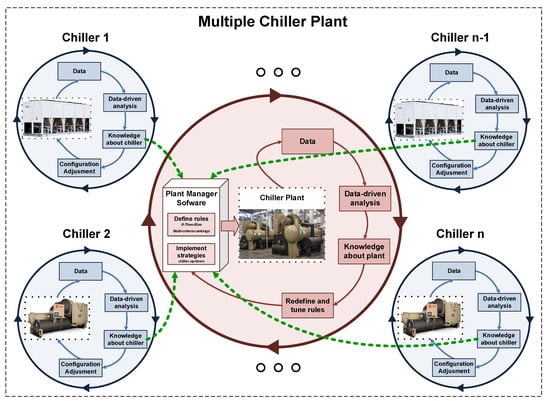 34]. The aim of relational control is to achieve optimal energy efficiency of the plant, requiring each chiller to be operated in relation to the operation of the others.