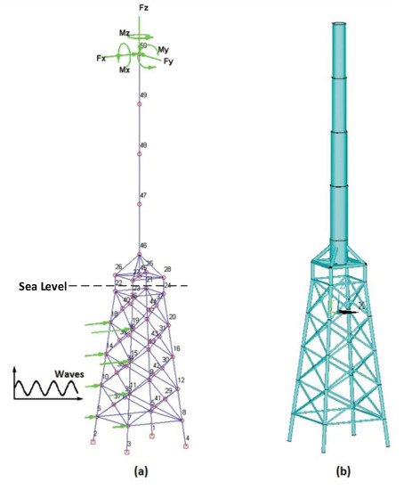 - Muk, C.O.; Bachynski, E.E.; Økland, O.D. Dynamic Responses of Jacket-Type Offshore Wind Turbines Using Decoupled and Coupled Models. J. Offshore Mech. Arctic Eng. 2017, 139, 041901. [Google Scholar]