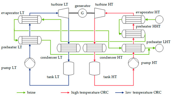 Scheme of the double-stage organic Rankine cycle (ORC) power plant.
