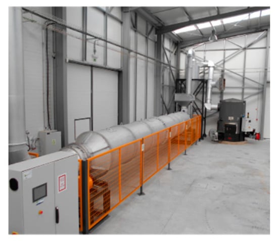 The reduction of the BSG moisture content was performed in the rotary dryer shown in Figure 1.