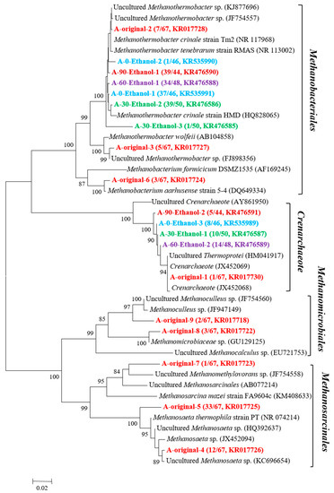 - Cheng, L.; Dai, L.; Li, X.; Zhang, H.; Lu, Y. Isolation and characterization of Methanothermobacter crinale sp nov., a novel hydrogenotrophic methanogen from the shengli oil field. Appl. Environ. Microbiol. 2011, 77, 5212–5219. [Google Scholar] [CrossRef] [PubMed]