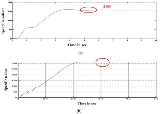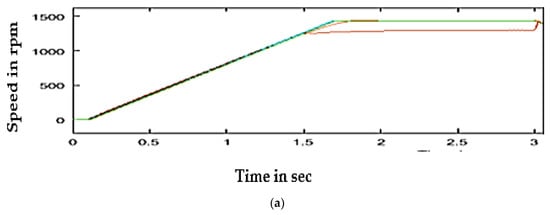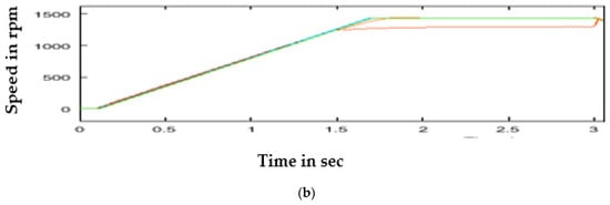 Speed response of dynamically modelled induction motor: (a) proposed five phase motor and (b) conventional three phase motor.