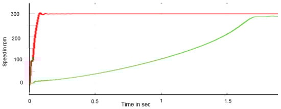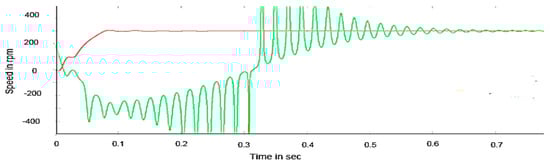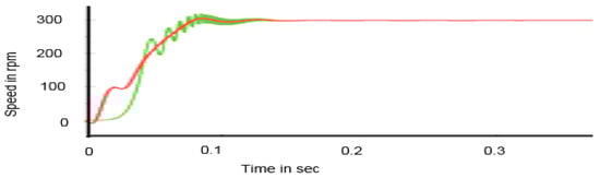 The speed guesstimation using the Kalman Filter method is being executed in MATLAB software. It can be observed from Figure 7 that the steady state error becomes zero and the settling time is also reduced drastically.