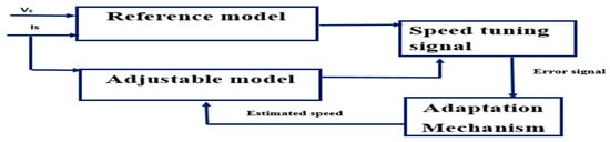 The model reference adaptive system (MRAS) estimators are the peak conservative method because of their modest structure and they have less associated calculation obligations than the other approaches. The elementary diagram of the MRAS contains an adjustable model, reference model, and an adaption mechanism. After the speed tuning, the error signal is given to the adaptation mechanism that is a neural network-based controller block. Here the output of both models is processed up to the errors linking the two models which depart to zero. The prototype accepts the voltage and current of the stator and determines the flux vector of the rotor. An adaptation mechanism with a neural network-based controller block is used to adapt the speed, so that the speed error is zero. The reference model equations are given by Equations (56) and (57).
