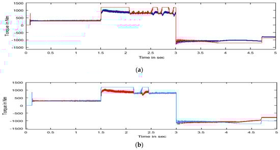Torque response of induction motor drive under normal conditions for proposed method: (a) induction motor 1 and (b) induction motor 2.