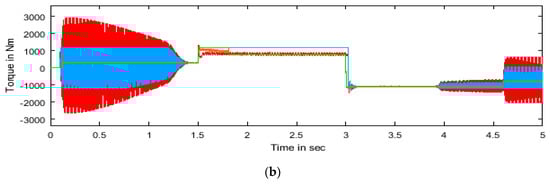 Torque response of dynamically modelled induction motor: (a) proposed five-phase motor and (b) conventional three-phase motor.