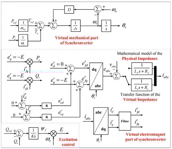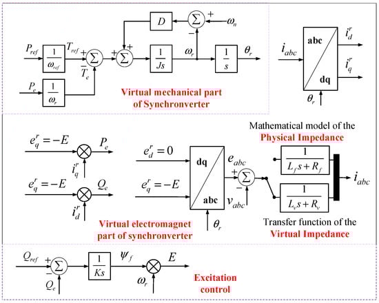 Combining the equations above, the nonlinear model of the synchronverter can be obtained as follows: