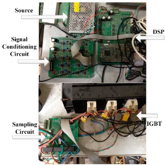 Comparative experimental studies are conducted for the conventional and proposed synchronverters in an unbalanced power grid. The experimental platform is set up as shown in Figure 9. A TMS320F2812 Digital Signal Processor is used as the microprocessor. The unbalanced grid voltages are simulated using a transformer by making one phase of the voltages drop to 80%. The dc-bus voltage is assumed to be controlled as a constant value by the distributed generation system. Parameters of the synchronverter are shown in Table 1 and Table 2. The switching frequency and sampling frequency are both set to 10 kHz. All the experimental results are shown in Figure 10, Figure 11, Figure 12, Figure 13 and Figure 14.