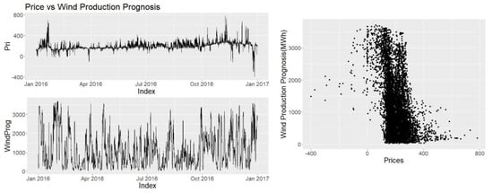 A large number of researchers used dummy variables to explain seasonal variables, such as the day of the week [23,24]. The latter of the two papers test consumption and production prognosis as variables. Other researchers [25] use system loads, fuel prices, seasonal variables stressing that available hydro energy and fuel prices are variables that could be used if, and when, data are present. Other researchers took into account the natural gas prices as explanatory variable. They did also test temperature, but was found of low correlation [26]. Others like [27] test wind prognosis, however, it was the link to price that was mainly proven.