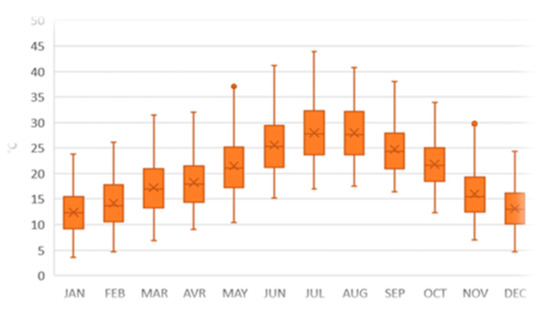 Monthly temperature distribution in Marrakech.