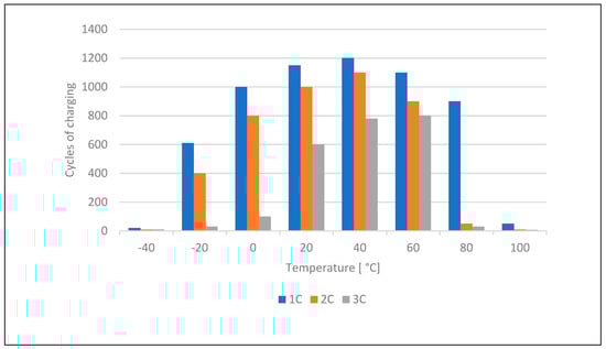An important issue is also the way the battery is charged (the charging process). A fast battery charging process takes place over a relatively short time, but with the significant effect of an increased thermal load on the cells (with the negative effects shown above). At higher SOCs and an elevated temperature, the SEI layer becomes unstable and can cause a severe reduction in battery performance (especially in output power). At the same time, a slow battery charging process reduces the thermal effect on cells, increasing battery life and equalizing the electrical potential of the cells (through the BMS system). In the opinion of the authors, a future integrated EV energy management system must take into account the geographic position of the vehicle and climatic information (as the ambient temperature can influence the charge pattern and efficiency). If an EV is used in the urban environment, then the driver will be informed about the need for recharging based on the daily EV user profile. In this case, the charging process can be slow. If the vehicle is operated over longer distances, outside of the urban environment, then the most efficient solution (from the point of view of user comfort) is the use of a fast charging station. Future studies should be carried out to determine whether a charging process at low ambient temperature must be done only when the battery internal temperature does not drop below 20–25 °C (alternatively, studies on the identification of an optimally differential temperature range) in order to increase the life span of EV batteries.