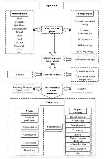 However, while the above mixed methods provided a sound approach for LCA [40], they are difficult to adapt for the EIA of transportation infrastructure projects over the life cycle. This is because the genetic algorithm and the energy-based calculation program do not consider the background system database such as production of materials, machinery or electricity to calculate environmental emissions of transportation infrastructure projects from the conception to the end of use.