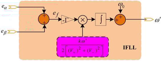 The value of in (23) is commonly defined as the voltage unbalance factor. From (23), it can be concluded that the design of FLL shown in Figure 2 cannot make the dynamics of the DSOGI-FLL independent of the voltage fluctuation under the unbalanced grid condition (). To address the issue, an improved FLL is proposed in this paper, as shown in Figure 3.