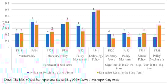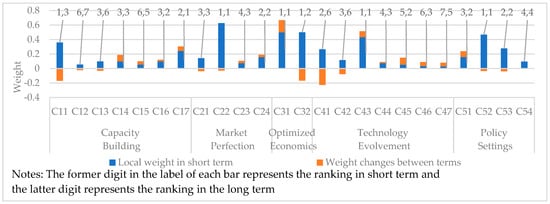 However, the weight change of each sub-criterion still reveals how the policy setting will change and how the market should be perfected. For example, the weight decrease in policy mechanism design (C53), along with the weight increase in market mechanisms (C23), stress the long-term market perfection through improved policy settings (C52) in the short term. The weight and ranking increases in macro policy (C51) also indicate the importance of market expectations (C24).