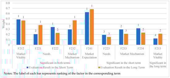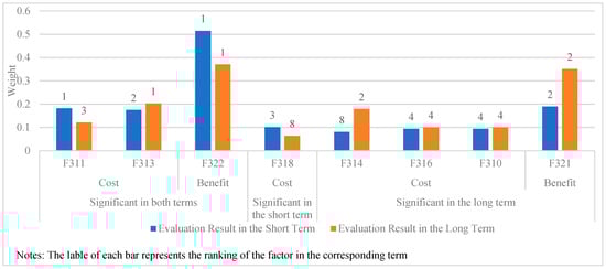 Because the Likert 5-Scale was introduced to collect the opinions of stakeholders, whereas the AHP method was used for data processing, the results and discussions are correspondingly two-fold. The results based on the Likert 5-Scale reveals the influence of each factor quantitively. The change of average value between the short term and long term indicates the perceived judgements on each factor independently. However, the other results based on the AHP methods provides more information on the weight and ranking of one factor’s influence on the rest—locally and globally—according to the methodology. Therefore, both results are considered when analyzing the collected data.