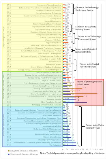 Contributing to the knowledge gap of the disaccord of perceptions of influencing factor between frontline stakeholders and researchers’ recognitions and the lack of stakeholders’ perceptions to the influence of factors, this paper aims to identify the factors of significant influence to the nationwide EE promotion of new residential buildings based on the lived experience perceived by relevant frontline stakeholders. Factors are collected through experts’ brainstorming and a literature review and are organized into three hierarchic levels according to the PLAN and the “Nested Policy Design Framework” proposed by Howlett []. The short-term (until 2020) and long-term (from 2020 to 2030) significances of each factor are evaluated separately because 2020 is the final year of the 13th five-year plan and most international agreements that China has signed are effective till 2030. The corresponding evaluation process is accomplished by institutional questionnaires distributed nationwide to 32 institutes representing different interests. The final quantitative value of significance of each factor is determined by the results of the analytical hierarchy process (AHP). The corresponding results in each hierarchic level give a stereo and panoramic view of factors, perceived by frontline stakeholders, influencing the EE promotion of new residential buildings in China from the perspective of governance arrangement, policy regime logic, and policy instrument selection for a better policy design and the corresponding implementation outcome.