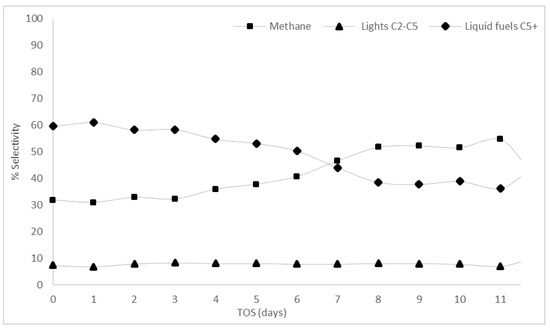 3.2.1. Conversion and Selectivity Results