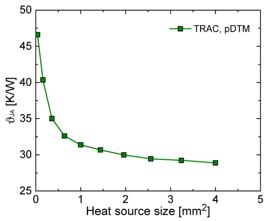 ϑJA markedly increases with reducing the HS size, which implies a growth in power density. This analysis allows concluding that a correct representation of the HS geometry (which depends on the specific application) is of utmost importance for an accurate evaluation of the thermal metrics of electronic packages.
