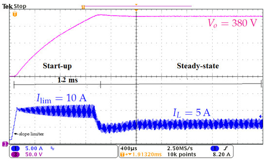 Figure 20. Startup and steady-state responses of the system from experimental measurements with slope limiter d i ref d t lim = 100 kA/s.