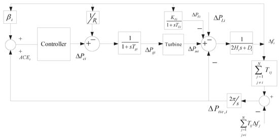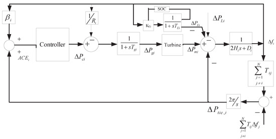 Block diagram of ith control area of vehicle-to-grid (V2G) system without state of charge (SOC).