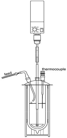 A simple experimental setup (Dewar reactor) was realized for the analysis of the hydration reaction comprising: a Dewar vessel with a capacity of one litre (Agil 1, Air Liquide, Paris, France) a stirrer and a thermocouple with a logging function (Figure 2). The process was started, by feeding water from the vessel lid triggering the exothermal reaction.