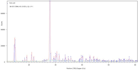The reaction mechanism of boric acid (H3BO3)–boron oxide (B2O3)—with the intermediate metaboric acid (HBO2)—is still not fully and clearly examined. On one hand, Zachariasen [17] described three crystalline modifications of metaboric acid. According to this theory, that was also represented inter alia by Sevim et al. [18], Balcı et al. [19] or Zhang et al. [20], the thermal decomposition of boric acid by thermogravimetric analysis (TG) would reveal two distinguished steps: