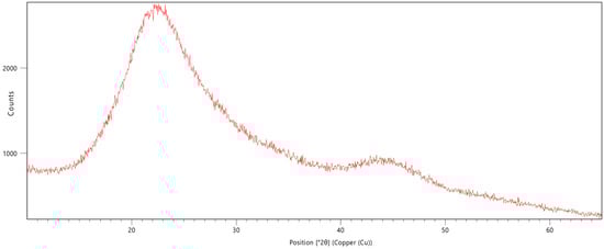 The XRD analysis showed the purity of the used boric acid and identified the samples monoclinic crystal system (Figure 5). However, an analysis of boron oxide was not possible due to its obvious amorphous structure. This would correspond with the SEM results as boron oxide is produced by dehydration of boric acid. In this process, the boric acid gets heated up to 1000 °C and causes a melting of the solid. The resulting vitreous boron oxide gets, after cooled down, ground, and sieved. The amorphous structure with randomly distributed atoms scatter X-rays in many directions and therefore causes only a large bump (Figure 6).