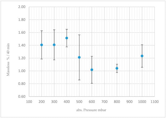 Volatility of 2.5 mg boric acid heated up to a temperature of 200 °C, as a function of absolute pressure [34].