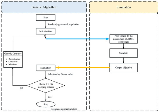 Genetic algorithm is a global search method that mimics the process of natural selection. It is one of the most well-known heuristic optimization methods, and has been used in various research areas [43]. In this research, the parameters in the decentralized ADRC controllers are optimized by GA.