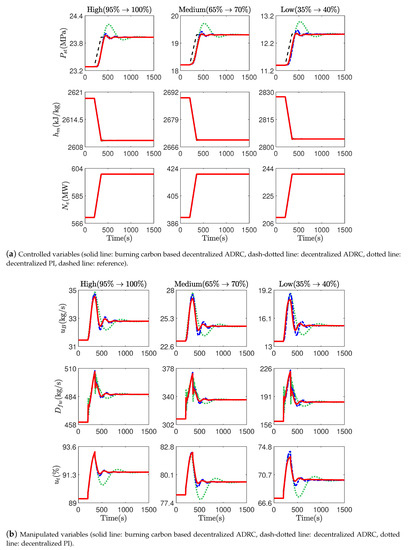 - Xue, Y.; Li, D.; Zhang, Y.; Gao, Q.; Wang, J.; Sun, Z. Decentralized nonlinear control of 300MWe circulating fluidized boiler power unit. In Proceedings of the 2012 UKACC International Conference on Control, Cardiff, UK, 3–5 September 2012; pp. 1019–1024. [Google Scholar] [CrossRef]