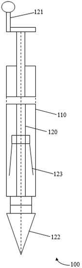 Figure 7 shows a detailed construction of a new electrode, GDSR. It comprises an outer shaft (110) and an inner shaft (120). The spike rods (123) are arranged on the body of the inner shaft (120), where the total number of spike rods is five. A pre-borehole was first made by using an auger, with a diameter of 3.8 cm. After completing the pre-borehole to a depth of at least 1.5 m, the grounding device with spike rods (100) is positioned in the hole, where the outer shaft (110) is subjected to stress and impact force while it is driven through hammering into the ground. The driving tip (122) has a pointed conical end to allow for easier penetration against obstructions encountered during driving of the rod. After that, using the provided winch (121), the inner shaft was turned in such a way that the grounding spike rods protrude out and pierce into the soil mass. GDSR was used in this study, since it was found by Petropoulos [21] that the earth electrodes attached with sharp points or needles have lower impulse resistance values than that without the sharp points. He [21] pointed out that by suitably shaping the electrodes with the sharp points, higher field intensities would be present, hence reducing the resistance values. For these reasons, a GDSR was used as part of the practical earthing systems. For checking the effectiveness of the shaping of various configurations, field measurements and testing at practical sites were carried out in this current work. A GDSR is postulated to cause and enhance ionization process in the soil, and discharge higher currents to the ground.