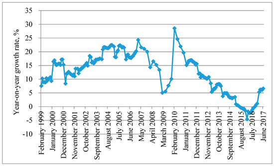 Figure 1 suggests, there had been a slowdown in the growth of the income of electricity generation and supply companies during 2010–2015. In particular, 2015 marked a decrease in income. This can be attributed to decreasing demand by energy-intensive heavy industries (e.g., steel production). Therefore, power generation is becoming a less important problem compared to the development of grid systems.