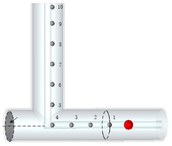 In topology, the number of branches connected to the node is called the degree (d) of the node. Obviously, the degree of an L-type node (node 4 in Figure 1) is 2 and the degree of a T-type node (node 4 in Figure 2) is 3. For general GIS, the node with the largest degree is the cross node, of which the degree is 4, and the node with the smallest degree is the terminal node, of which the degree is 1. The cross node can be considered as the combination of two L-type nodes. To effectively detect the EM wave of PD, the EM wave should not pass through more than one L-type node, one cross node, or one T-type node. These three nodes are collectively called the nonterminal node, of which the degree is greater than or equal to 2.
