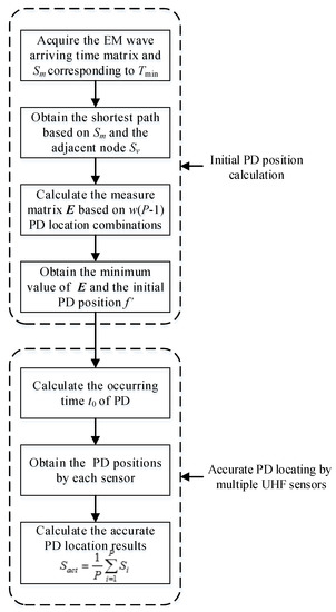 Based on the optimal placement of the UHF sensors and the arriving time of EM waves, the initial results of PD locating can be calculated by the Euclidean distance and the TDOA method. Then, the accurate results can be calculated by the occurring time of PD and the information of all UHF sensors.