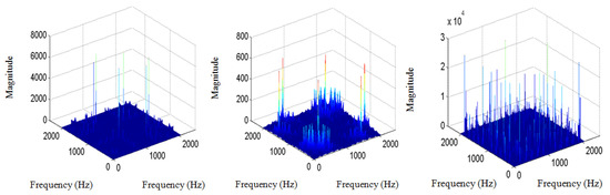 Power spectral analysis is a popular and efficacious method in traditional signal processing; however, phase information of signal is neglected in power spectral estimation [19]. Higher-order spectral analysis method is a new technology in signal processing in recent years. Higher-order spectral analysis based on higher-order cumulant not only preserves phase information of signals, but also restrains the interference of the effects of noise. These superior characteristics contribute to the wide range of applications in signal processing.