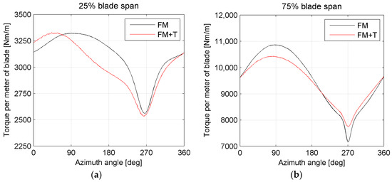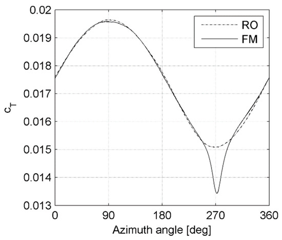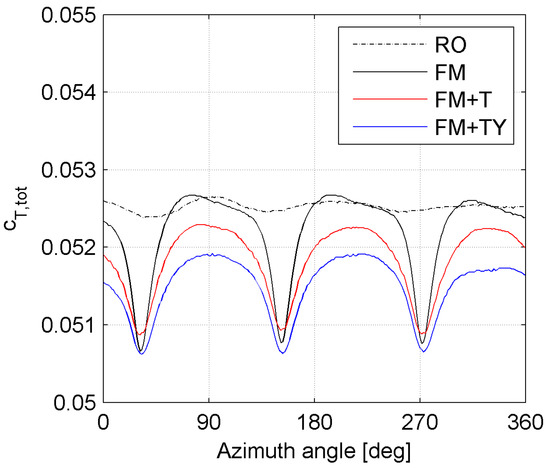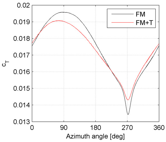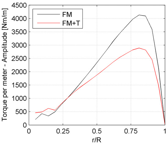 Figure 9 shows the torque contribution of the single blade in the FM and FM + T configurations.