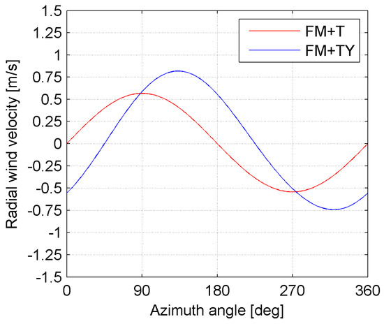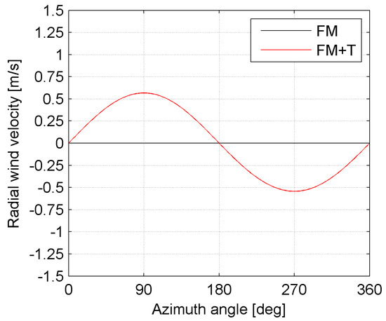 For an azimuth angle of 270°, the radial velocity (
