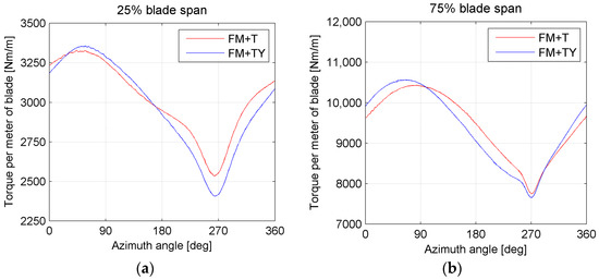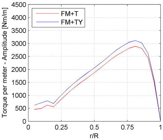 Figure 17 shows the torque contribution of the single blade in the FM + T and FM + TY configurations.