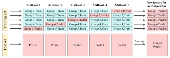 The ranking of the three models mentioned above is adjustable based on the testing results. The training methods of the GRU network, XGBoost, and MLP network are the same. XGBoost is taken as an example to illustrate the k-fold cross-validation method. The training process is shown in Figure 2.