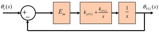 The choice of and will determine the dynamics of the PLL. From a general perspective, PLLs with low bandwidth are required when the grid voltage is unbalanced/distorted (for cancelling ripple). In contrast, when the three-phase system is clean and balanced, three-phase PLLs can have a high bandwidth, which results in a very fast transient response, providing fast and clean phase-angle estimation [,]. In this work, the latter case is studied.