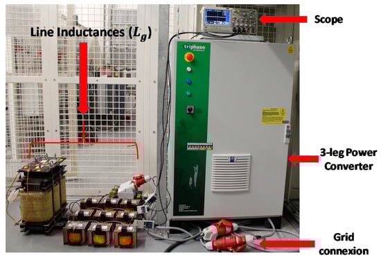 Figure 3 shows the three-phase three-wire balanced system considered in this paper. This topology is commonly used in power systems which use distributed generation (DG) units, e.g., photovoltaic [,]. In some cases, renewable sources are installed in remote locations, far from the main power grid, requiring long lines to transmit the power. In other cases, renewables are connected to distribution feeders designed for a relatively low power rating, with transformers characterised by non-negligible impedance. In the worst case, renewables contribute to the power generation in autonomous remote grids, typically powered by diesel gensets. In all these cases, the AC grid seen by the converter is weak. It is therefore important to study the effects of the PLL on the system stability to prevent the inverter from tripping. It is assumed that the inverter shown in Figure 3 is connected to a balanced three-phase, three-wire weak grid. In this type of system, it is desirable to have a PLL with a high bandwidth to ensure a fast-transient response. However, the weakness of the grid imposes a trade-off between the maximum PLL bandwidth and the stability of the system.