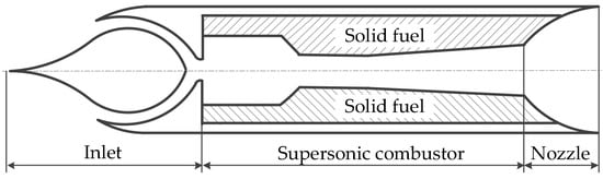 - Hu, M.; Wei, Z.; Ding, S.; Wang, N. Numerical investigation of a combined solid fuel scramjet combustor. Acta Astronaut. 2018, 148, 210–219. [Google Scholar] [CrossRef]
