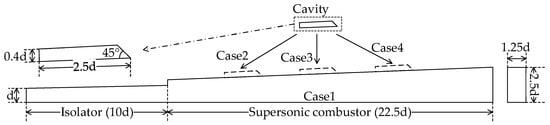 - Huang, W.; Wang, Z.G.; Yan, L.; Liu, W.D. Numerical validation and parametric investigation on the cold flow field of a typical cavity-based scramjet combustor. Acta Astronaut. 2012, 80, 132–140. [Google Scholar] [CrossRef]