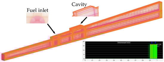 - Micka, D.J.; Driscoll, J.F. Combustion characteristics of a dual-mode scramjet combustor with cavity flameholder. Proc. Combust. Inst. 2009, 32, 2397–2404. [Google Scholar] [CrossRef]
