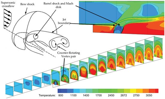 - Sun, M.B.; Hu, Z.W. Generation of Upper Trailing Counter-Rotating Vortices of a Sonic Jet in a Supersonic Crossflow. AIAA J. 2018, 56, 1047–1059. [Google Scholar] [CrossRef]