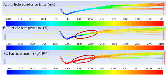 - A competition occurs between the particle and the gas phase combustion near the fuel inlet. However, the high temperature generated by the gas phase combustion can accelerate the subsequent particle combustion.