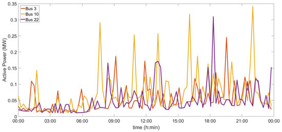 As observed in Equation (12), each particle in the ORESP problem consists of three parts, each describing the optimal siting and sizing of each RES technology, as in the ODGP problem. The particle formulation in Equation (12) ensures that all available RES technologies are examined concurrently for installation in the network, hence avoiding any bias. Thus, the optimal solution under the proposed approach refers to the following optimization: